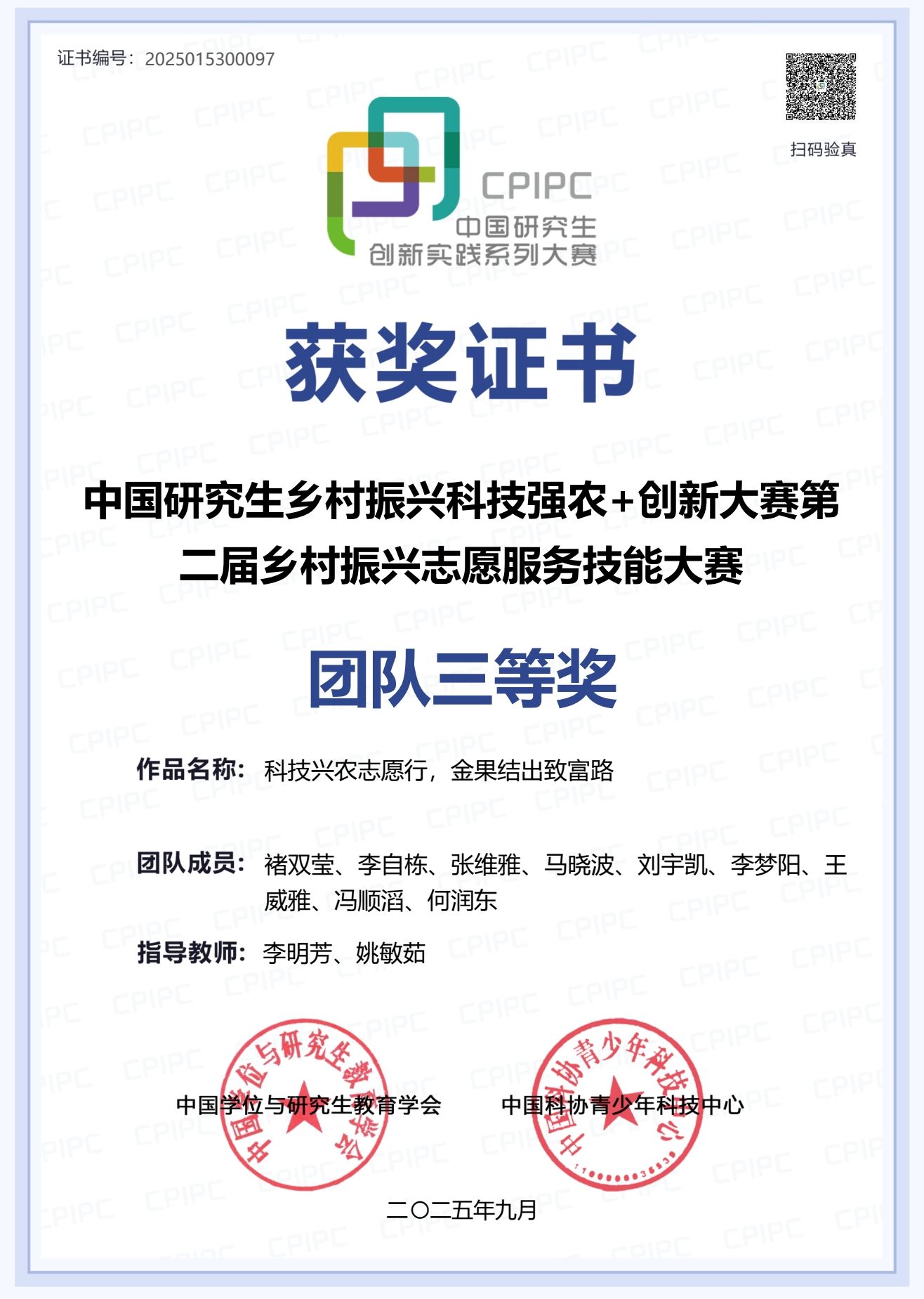 近日,中国研究生乡村振兴科技强农+创新大赛之第二届乡村振兴志愿服务技能大赛现场决赛在山东烟台落下帷幕。