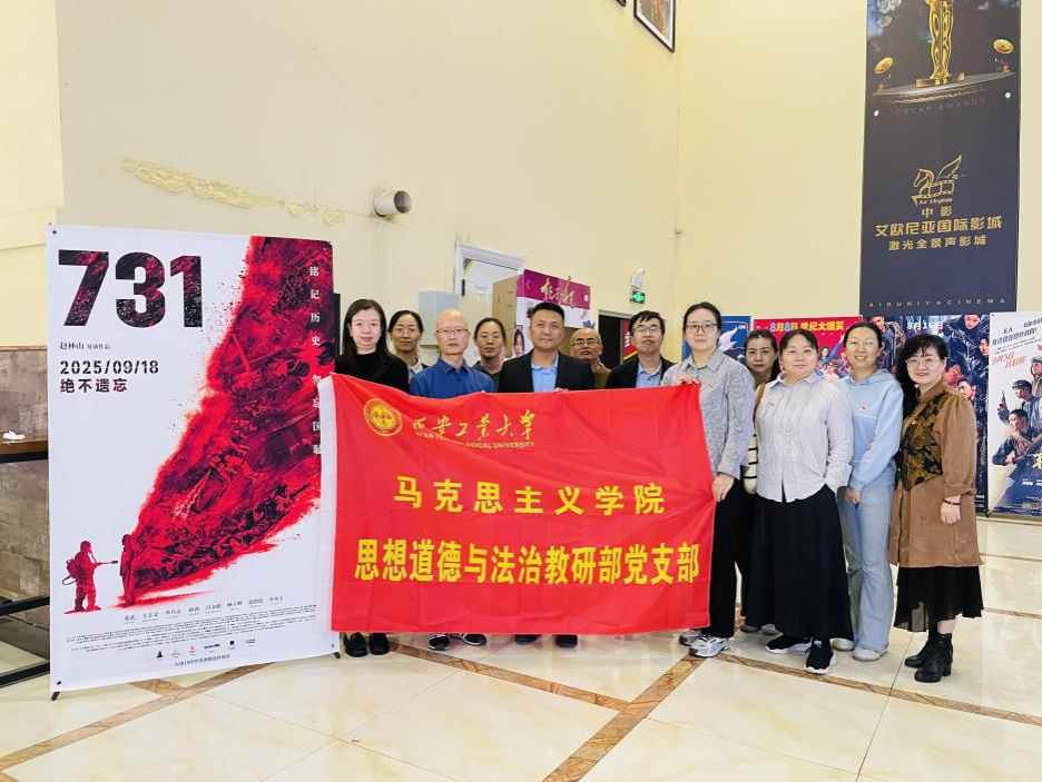 为纪念中国人民抗日战争暨世界反法西斯战争胜利80周年,铭记历史、缅怀先烈、珍爱和平、开创未来,9月18日,思想道德与法治教研部党支部开展“铭记历史 踔厉奋发”主题党日观影活动,观看了影片《731》。
