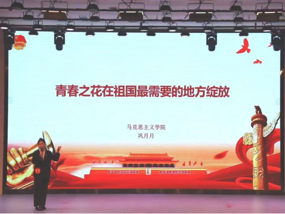 公司2021级研究生团支部副书记巩月月在以“青春之花在祖国最需要的地方绽放”为主题参赛,她讲出了新时代青年的心声:“年轻一代要继承和发扬吃苦耐劳、自力更生、艰苦奋斗的精神,摒弃骄娇二气,像我们的父辈一样把青春热血镌刻在历史的丰碑上。”“到祖国最需要的地方去,是伟大时代之需,是青年成长之要,是优良传统之继。奔赴光荣与梦想的远征,新时代青年更须在青春的赛道上奋力奔跑,用青春的能动力和创造力激荡起民族复兴的澎湃春潮,用青春的智慧和汗水打拼出一个更加美好的中国!”