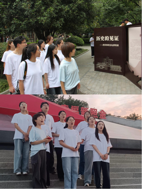 实践队从八路军西安办事处纪念馆启程。馆内,锈迹斑斑的步枪、泛黄的家书、磨损的救亡传单仿佛都在诉说着80多年前爱国青年冲破封锁、奔赴抗日前线的热血。转至西安事变纪念馆,队员们在“历史的见证——西安事变旧址群联展”前驻足良久,从一张张历史照片中读懂那段“挽民族于危亡”的抉择。在安吴青年训练班旧址的老槐浓荫下,仿佛仍能听见青年学员们“团结起来,振兴中华”的呐喊;薛家寨革命旧址的蜿蜒山路间,队员们亲身体会当年红军战士在悬崖峭壁间坚守阵地的艰辛。照金革命纪念馆前,《红星闪耀》宣讲声中,“星星之火可以燎原”的信念在每位队员心中生根发芽,队员徐娇娇举起拳头轻声跟读——那是跨越时空的信念共鸣。每一处遗迹、每一段故事,都让队员们深刻体悟到,正是革命先辈们坚定的理想信念和不屈不挠地斗争精神,才换来了今天的和平与繁荣。这份信念,将化作新时代征程上的奋进之力。