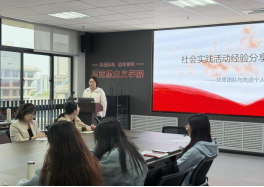 在社会实践活动分享环节,2024级的朱琳与褚双莹两位同学先后作经验交流。朱琳从社会实践的基本信息入手,解读2025年暑期实践细则,并鼓励同学们主动关注官方媒体与班级通知,积极参与实践活动;褚双莹则围绕实践质量提升,倡导同学们将精力聚焦于真正感兴趣的领域,通过持续打磨打造“精品”实践项目。