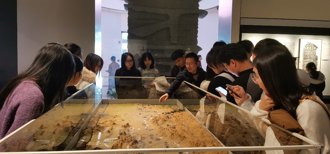 步入场馆,“象天法地”的建筑格局令人震撼,展厅内的多元光影组合使厚重的历史文化触手可及。同学们分为两组,分别聆听了冯晓多老师与工作人员的详细讲解,厘清了秦汉政治制度革新、经济繁荣发展、文化多元整合的历史脉络。